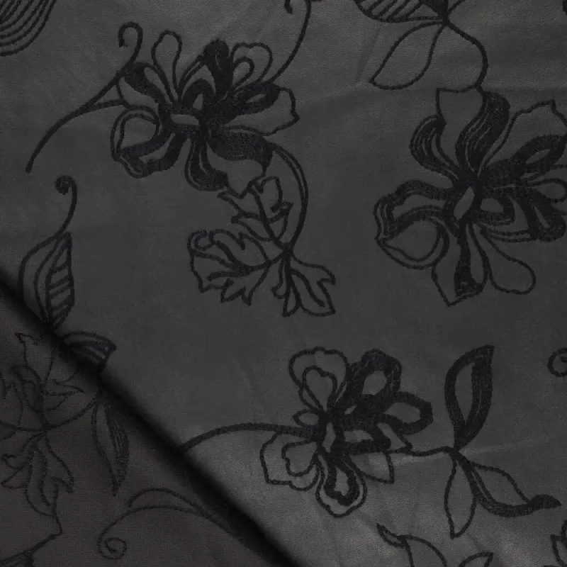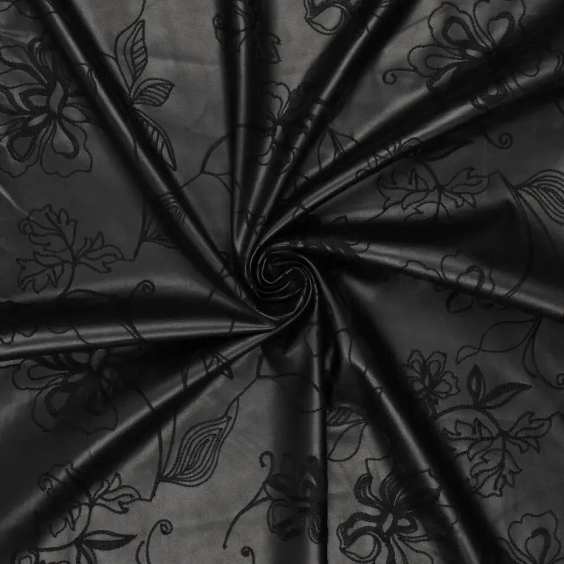 La tela Washed Emb Vegan Leather de La Mercerie Café Bouton es un tejido tipo cuero vegano en color negro con un diseño floral bordado que le otorga un toque de elegancia y sofisticación. Con una composición de 100 % poliéster en el reverso y 100 % poliuretano en el anverso, ofrece una estructura firme y una apariencia similar al cuero natural. Su peso es de aproximadamente 300 g/m² y su ancho es de 125 cm. Este material es ideal para la confección de prendas de invierno como chaquetas, abrigos o accesorios que requieran un acabado elegante y resistente.