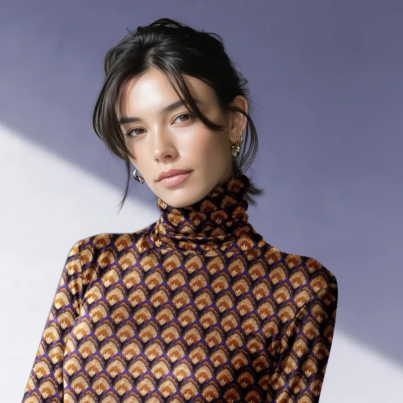 Su estructura de punto firme y su caída controlada la hacen ideal para confeccionar vestidos estructurados, faldas lápiz, blazers ligeros o pantalones elegantes. El estampado decorativo aporta carácter sin perder versatilidad, adaptándose tanto a looks formales como a diseños sofisticados de uso cotidiano.